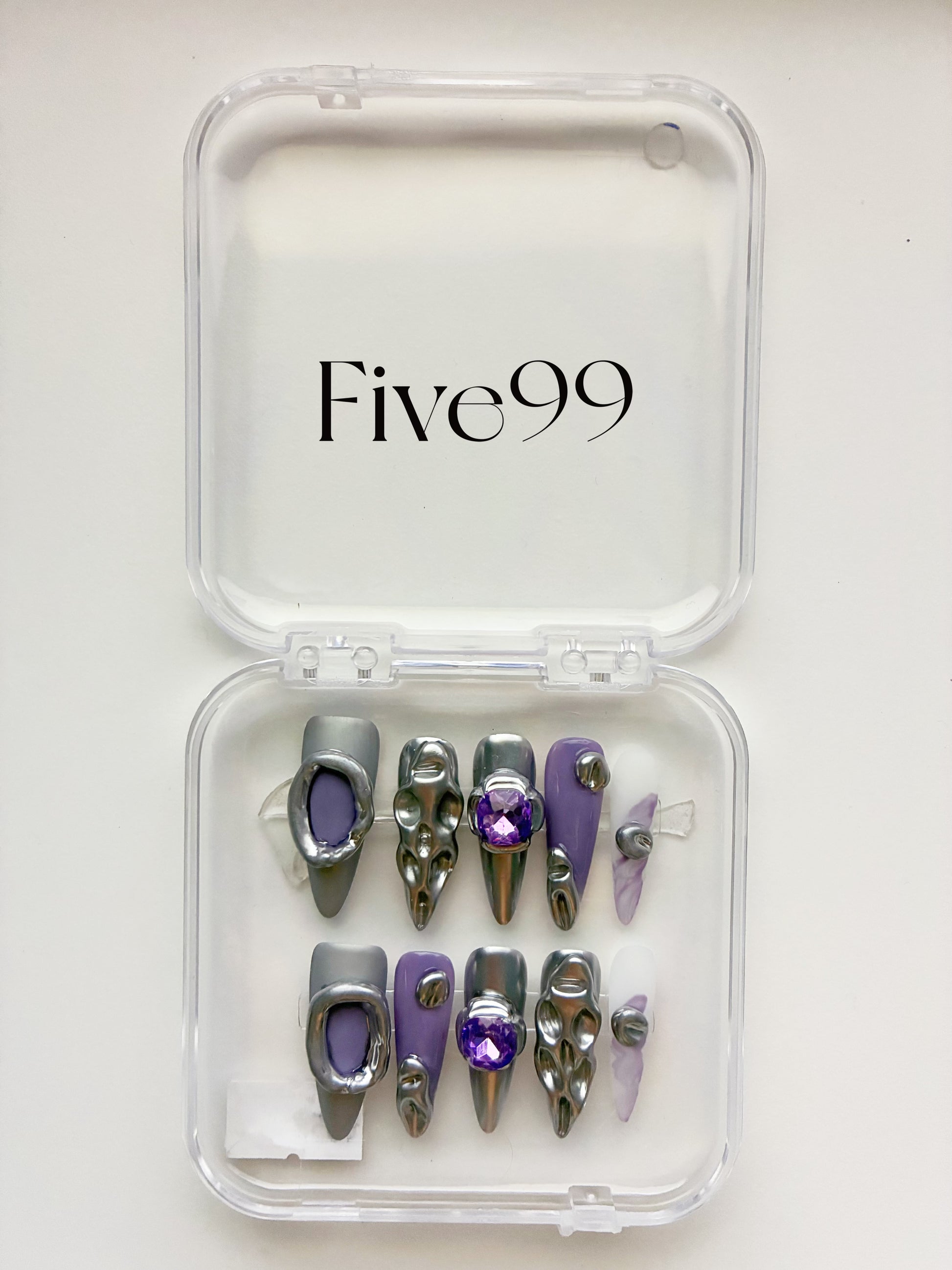 Break the mold with Amethyst Forge — a set crafted for the bold, the creative, and the rule-breakers. Featuring molten metal textures, icy grey tips, cloudy lavender gradients, and gemlike amethyst cores, this design fuses futurism with gothic elegance.