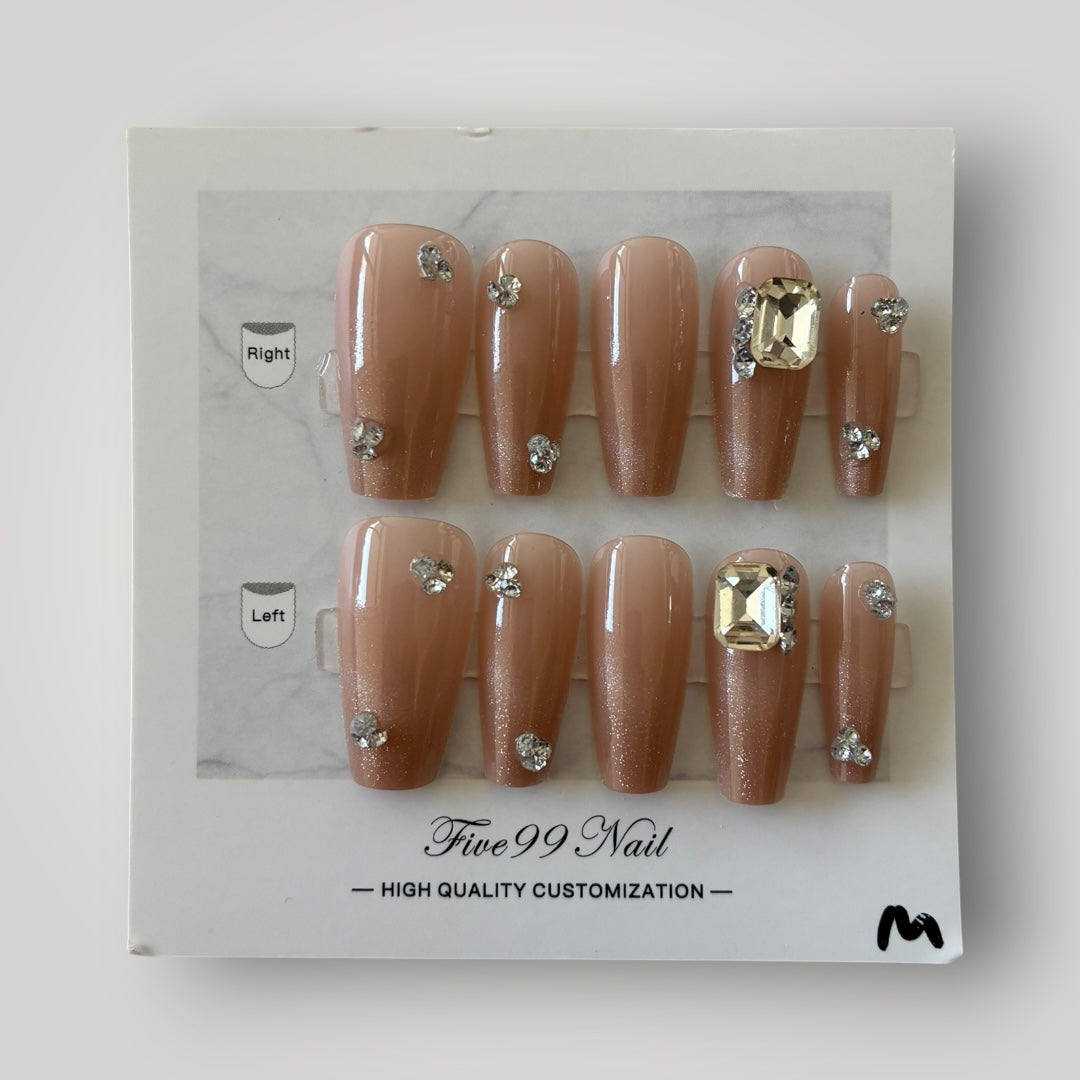 Champagne Crystal | Handmade Press-On Nail Set - 10 Pieces