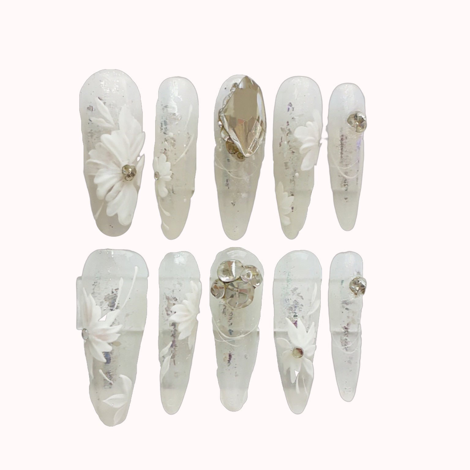 Crystal Garden Bloom | Handmade Press-On Nail Set - 10 Pieces