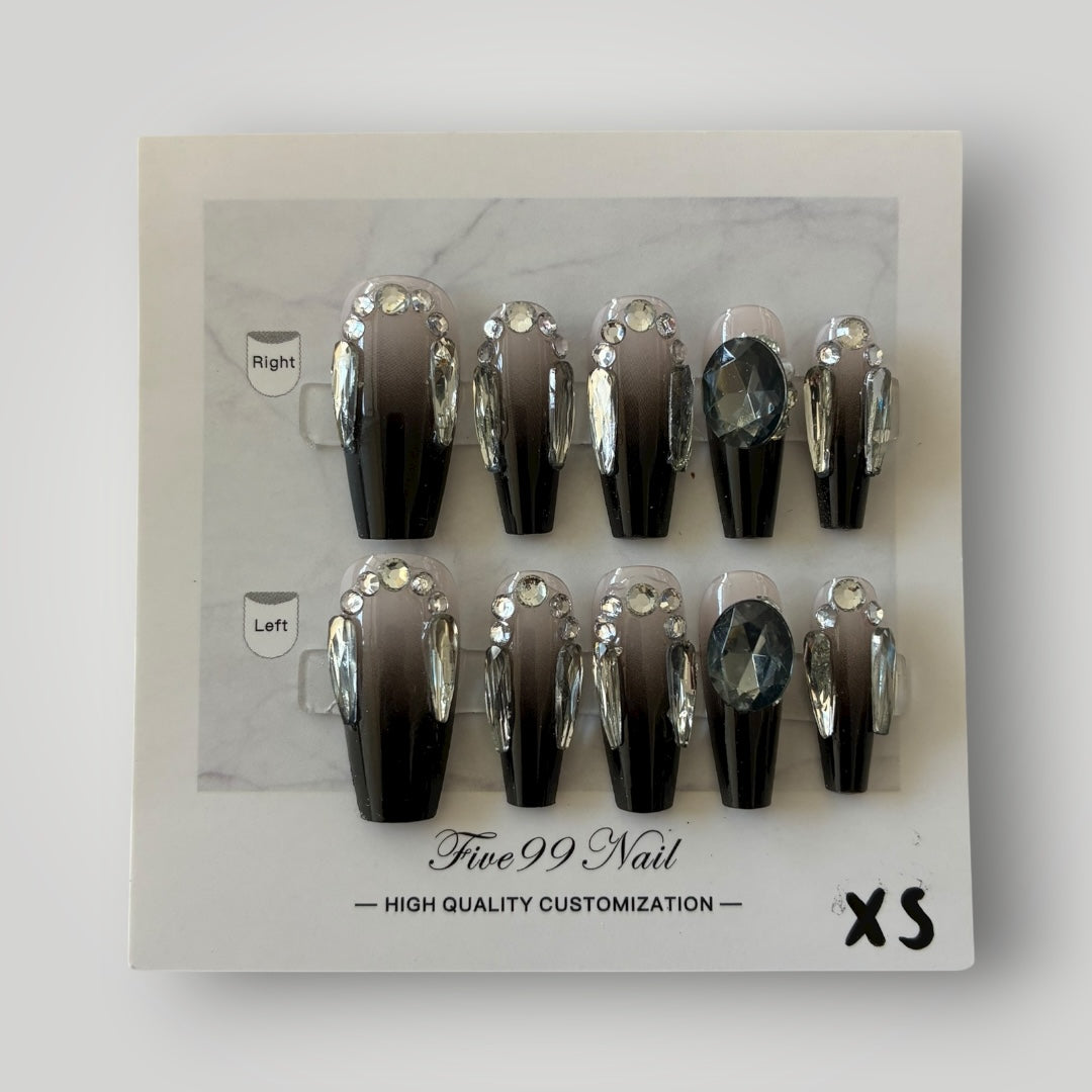 Crystal Noir | Handmade Press-On Nail Set - 10 Pieces