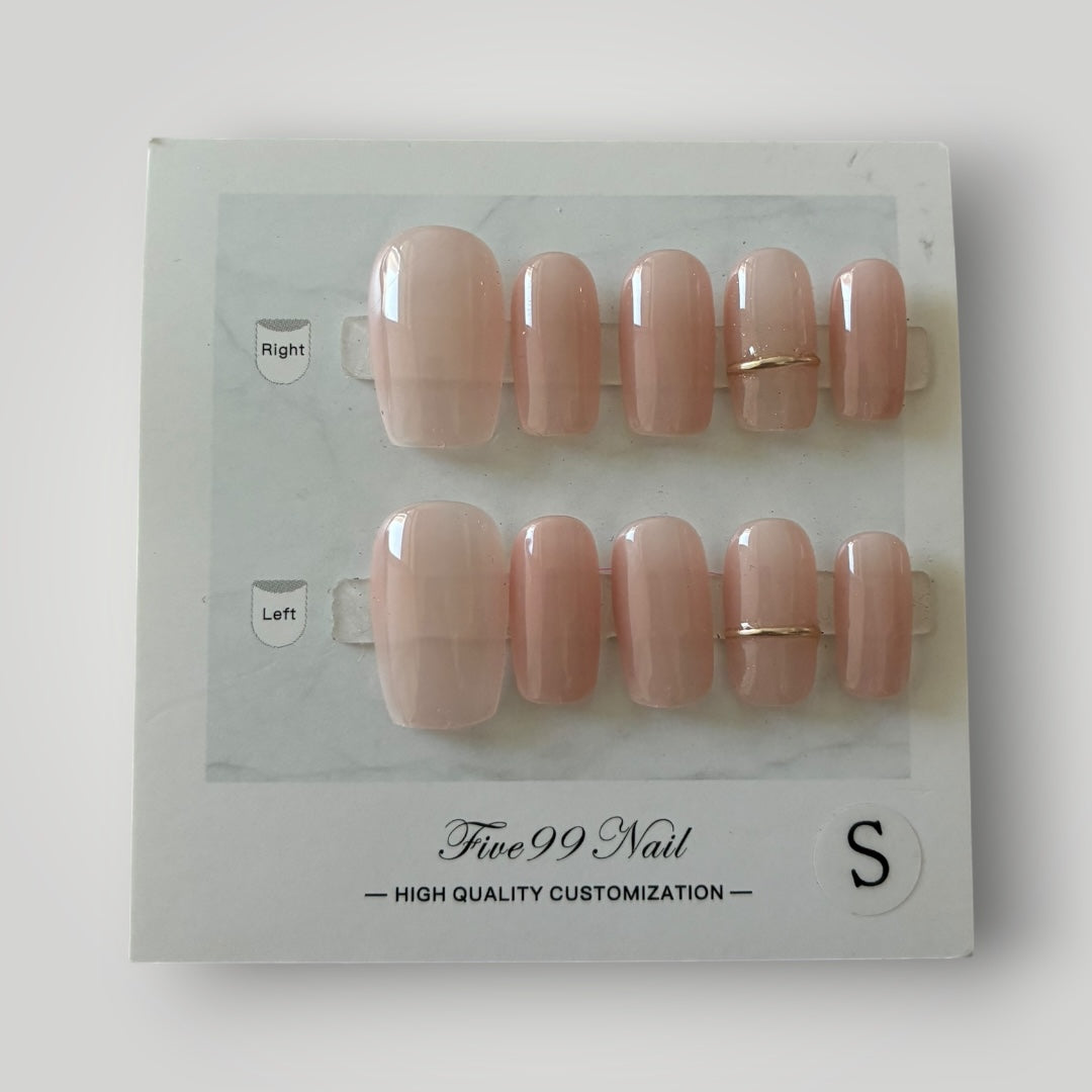 Less is more β this minimalist nude set is designed for effortless elegance. A soft milky blush tone covers each nail, with two accent nails featuring a delicate gold wire detail for a touch of understated luxury. Ideal for everyday wear, office looks, or bridal simplicity.